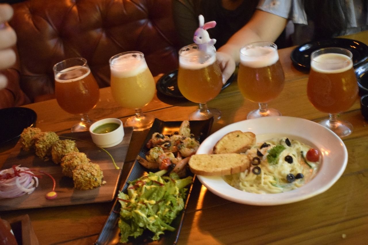 You should try their Apple Cider Beer, Lager, Wheat Beer with lip-smacking starters like achari paneer tikka, butter garlic prawns, and pasta. Oh, and do not miss out on their soul-satisfying main course options like dal makhani, kadhai paneer, and handi chicken. I'd definitely go back to try the rest of the menu."