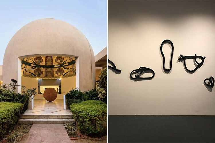 After the featured image-1. Interior of the Capitol Complex, Chandigarh;Seen in the background is a tapestry designed by Le Corbusier in the 1950s-60s; Manuel Bougot | 2010–11 Epson Enhancement Print2. UntitledPrabhakar Barwe | 1981–82 Silk, Hand-painted With acid dyes3. Tree A & BMonika Correa | 2012–13 Warp — Unbleached Cotton, Weft — Dyed Cotton, Handwoven4. Timeless Silhouettes: Angarakha 1Shelly Jyoti with Junaid Ismail Khatri and Sako Bhai | 2013–14 Khadi Cotton, Ajrakh, Hand Printed with Natural Dyes5. ChintzRenuka Reddy Bengaluru, Karnataka | 2017 Cotton, Hand-Painted, Mordant and Resist-Dyed with Pomegranate and Fermented Iron6. UntitledAsif Shaikh | 2015 Zardosi, Hand-embroidered using Aath-Masi Zari and Beetle Wings on Handwoven fabric with Peacock Feathers7. A Secret WithinManisha Parekh | 2008 Jute Rope and Acrylic Paint8. Assembly RequiredGhiora Aharoni | 2013 Silk Thread on Vintage Bagh, Hand Embroidered9. Parsi Gara Sari — Big Crane MotifsAshdeen Lilaowala | 2014 Silk Crepe, Hand-embroidered With Aari Satin-Stitch10. Yellow RiverNeha Puri Dhir | 2014 Silk, Stitch-resist Dyed