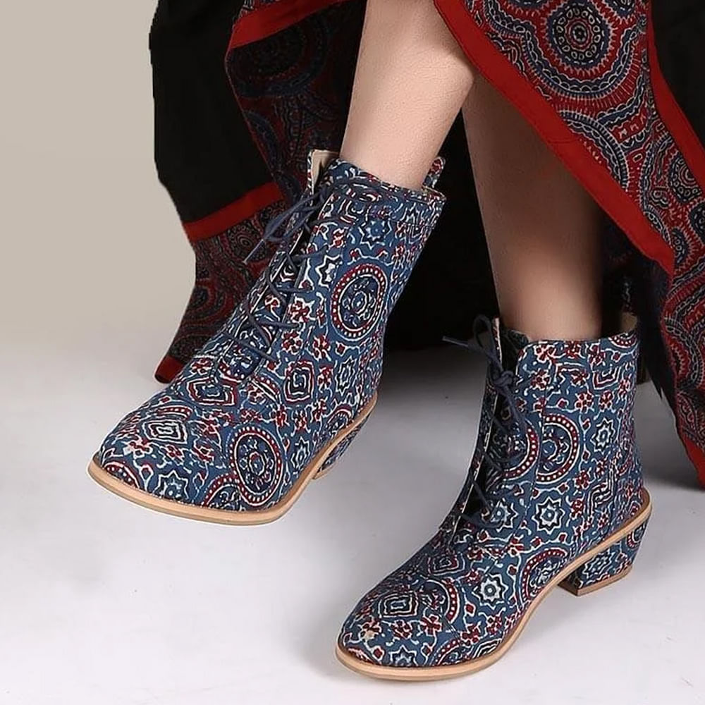 Hand-crafted leather boots in solid colours such as red, blue and green played off with thread weaves in typical winter patterns. Buy these for their ethnic twist and pair them with any outfit to jazz it up.