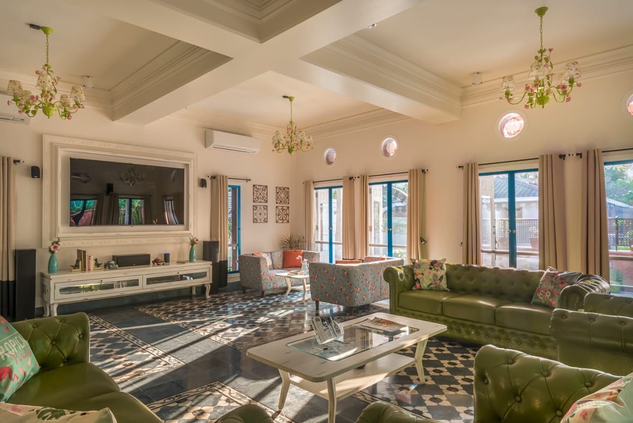 A private pool, gazebo, a rooftop, a beer fridge, PS4 and a cool patio… If all these aren’t a part of your Goa villa dreams, who are you even? This 5-bedroom villa in Candolim is ultra luxurious and can take up to 10 part poppers — lucky be the ones who get the master bedroom on top that opens to a gazebo and has a steam room. It’s pretty close to Tito’s, Club Cabana, Britto’s and the likes and Candolim beach is a stone’s throw away (hello, Cafe Chocollati, hey Bomra’s). The tariffs here start at INR 45k a night.
