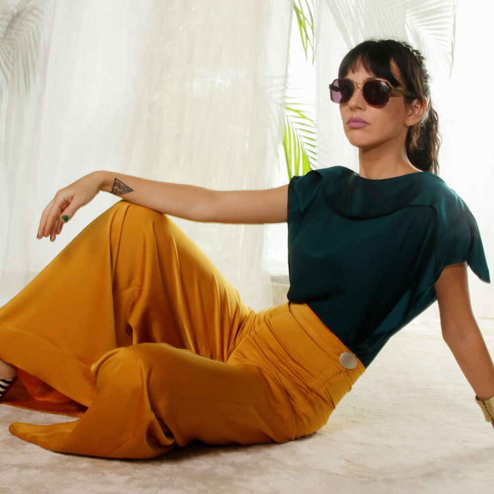 A glance at Brindisi’s luscious evening gowns, skirts, pants, tops, jumpsuits and dresses, and we were blown. Brinda tells us that she’s super picky about the kind of fabrics she works with. Most of them are imported and are made to last; they also lend themselves to the beautiful fall and drape that’s synonymous with Brindisi’s glam evening wear. It’s impossible to unsee a bit of Australia in the design sensibilities everytime we see a billowy white dress or a dreamy linen pant.