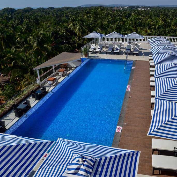 Silver Sand Serenity is a hotel in Candolim, and a preferred choice of holiday destination for families and large groups. It is one of the few hotels in North Goa that offers affordable luxury, excellent location and great services in such a prime area. With a multi-cuisine restaurant, a lounge, gym and an infinity pool, this hotel is ideal for relaxation and entertainment. The rooftop infinity pool here promises beautiful views of the lush greenery all around, and is best enjoyed during sunset.