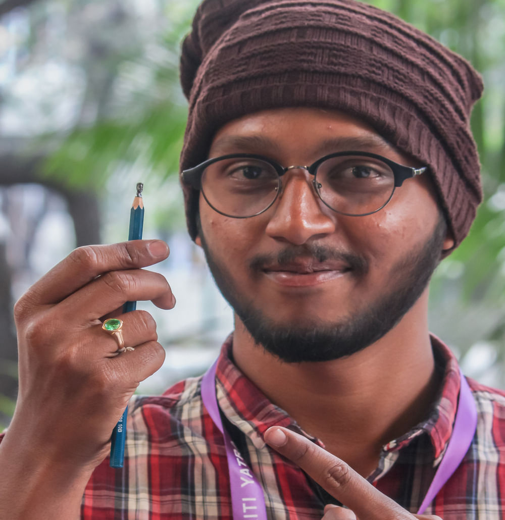 Pencils have been used by artists as a tool to create many artworks, but Dheeraj Kolla is making pencil itself a piece of artwork. His works on the tips of pencils like carving things from a name to APJ Abdul Kalam will leave you amazed and will make you wonder how he did everything in that miniscule space. And if you’ve ever broken the tip of your pencil by pressing too hard on a page, you can imagine how much care Dheeraj’s artistic practice requires.