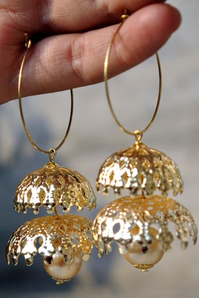 Got your dress sorted and looking for a pair of earrings to complete that sassy look? These layered dangler earrings are all you need. It comes with a pearl at the end, which makes it all the more Hyderabadi.