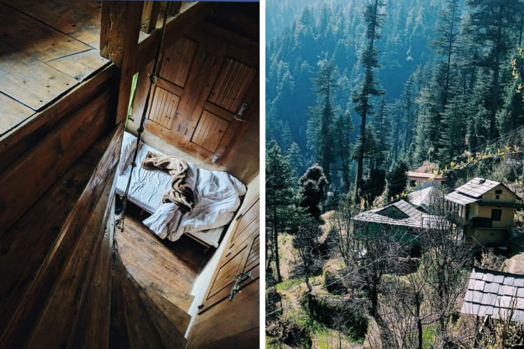 Spread towards the bottom of the hills, these wooden chalets are surrounded by simple Pahadi homes, a cafe, meditation area, and plenty of greenery. It doesn't shy away from the luxury, and they come furnished and offer epic views from the bedroom. The gushing Om River, a tributary of Tirthan Valley, will lull you to sleep with the sound of its ebbs and flows and from the cottages, you can explore your way down to the river. Plus, it's located close to Jibhi Waterfall!