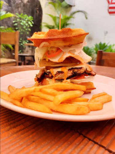 We have ordered the holey breakfast burger 🍔 This burger comes with two slices of waffles unlike the regular buns which is interesting it is layered with lettuce,hash brown , chicken sausage,bacon, salami,fried egg ,cheese and a chicken patty 😋loved the freshness of the waffles and loved the chicken patty.It was a good affair in total and we thoroughly enjoyed having it 😋