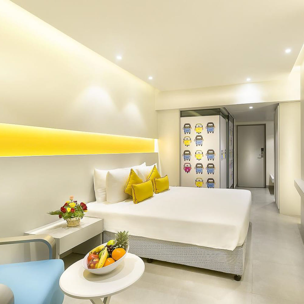 The fact that Zibe has totally adorable rooms, perfect for millennials, is what makes it awesome. The first thing that caught our eye is naturally the decor. From a neon-coloured strip that runs right above the bed to the paintings of birds, autos, etc on the closet doors, you won't stop gawking at the decor. Although for the most part, the rooms are just white.