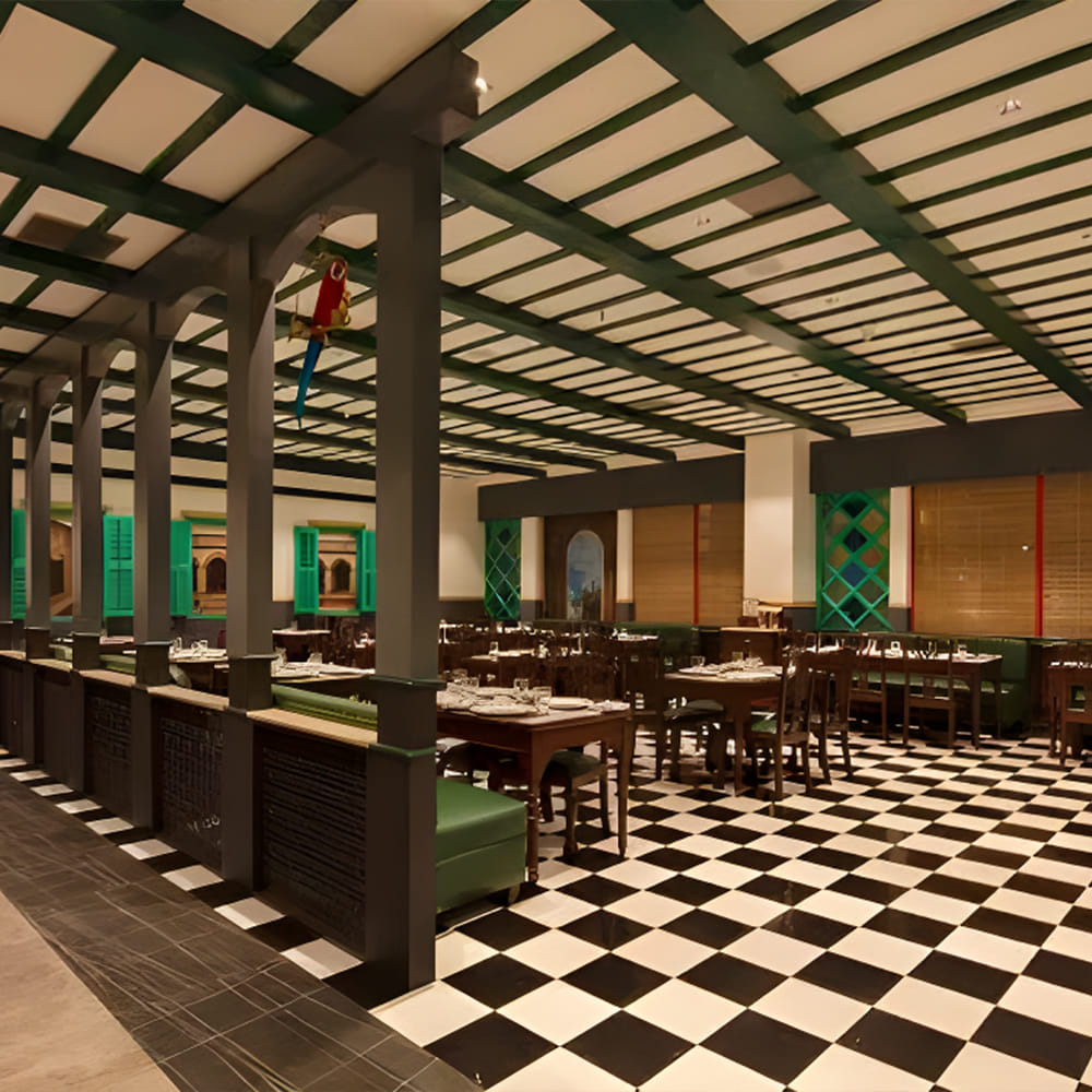 The banquet is located on the second floor of the flagship outlet of 6 Ballygunge Place. It can accommodate 100 to 120 people, making it perfect for grand gatherings. The rooftop makes for a fantastic winter outdoor setting. Their partner catering service Savourites is among the best in the city, with authentic Bengali dishes as well as indulgent continental favourites. The price varies depending on the menu and whether you opt for the rooftop.