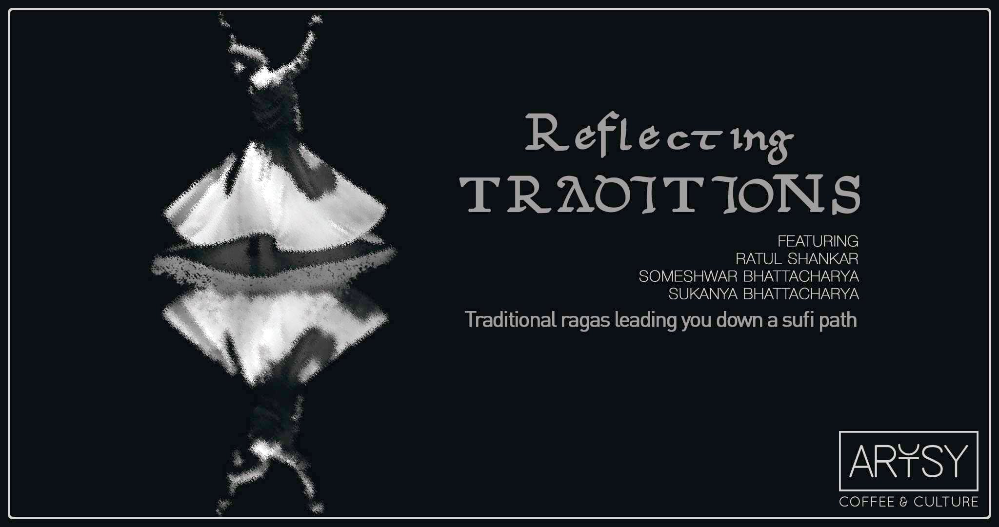 Reflecting Traditions, live in concert, will present a Sufi set that is inherently filled with imageries of traditional raga music. With upbeat and soulful improvisation the trio will take you down the road of sufi kalaam. Ratul Shankar is known worldwide as a genius of percussion, known for is versatility across myriad genres. Someshwar Bhattacharya plays with Mohin ekhon Bondhura and in innumerable projects and bands. The ease of his emoting and skills draws listeners in as he soars through various genres. Sukanya Bhattacharya has trained in Hindusthani vocals and is exploring jazz, blues and other genres through various national and international collaborations.