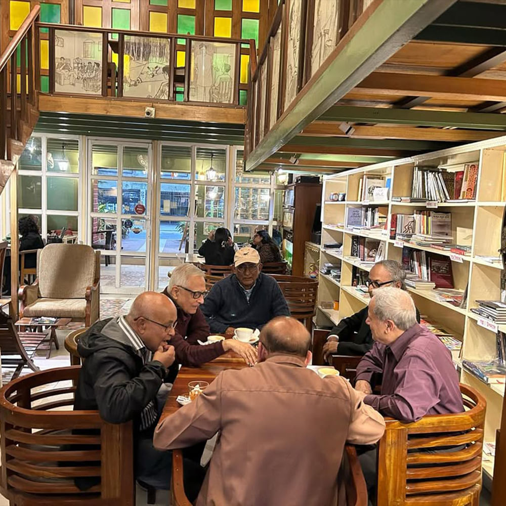 This was the first café to pop up in Jodhpur Park and it owned the café scene in this hood. One of the most well-known in the city, Abar Baithak has undergone a revamp — it has two floors now and a theme centre around Kolkata’s favourite sleuth, Feluda. They also have books on sale along with other things like funky coffee mugs, bags and cushions. There’s a carrom board too, but you have to be lucky to find that spot empty! It’s spread over two floors. Books by Satyajit Ray, Sherlock Holmes, and Rabindranath Tagore abound on the bookshelf. Enjoy a classic book while munching on a Chicken Salami sandwich and drinking Hazelnut Coffee. You can stand on the balcony, sit in the wooden half-sphere seats, or snap an Instagram-worthy photo with Utpal Dutt in Maganlal Meghraj's cartoon.