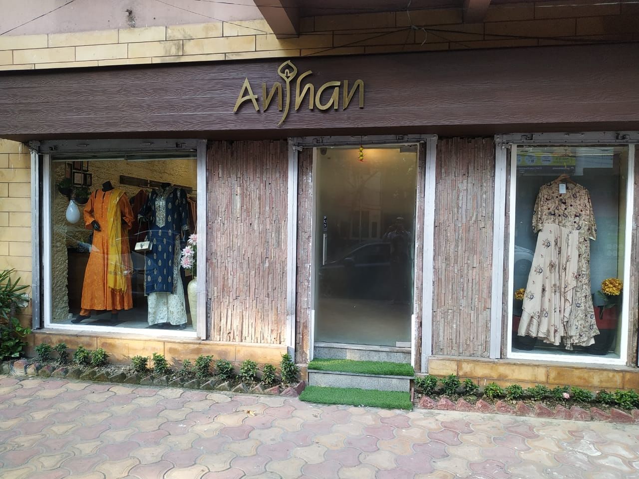 Your search for vibrant and pastel-coloured kurtis will end at Anjhan on Lake Road. Situated in the quiet locality of Lake Road opposite Ectsasea restaurant, the store is not hard to trace. The entrance is decorated with a little bit of greenery, which can be viewed as a miniature garden. It is goes really well with the wooden bark-like texture near the door and on the board.