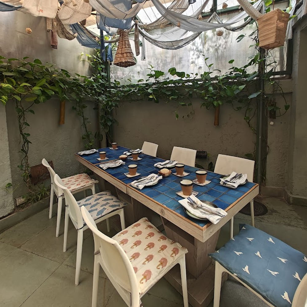 Sienna Store and Cafe is a charmingly unconventional café. It is located in a peaceful small alley in Hindustan Park. There are several surprises in this two-story building. This tiny store has expanded to become the incredibly stylish flagship location where a variety of exquisite items await discovery! The entire building has been built with elements of zero-waste policy. From the wall art that has been made from broken ceramic pieces to the lights above, everything has a story and has been made in-house. The khorkhori janlas set the perfect backdrop for the cane table and chairs in the dining room. As you walk into Sienna, all your senses just pause to take in how the local craftsmanship of Bengal can turn so aesthetic.