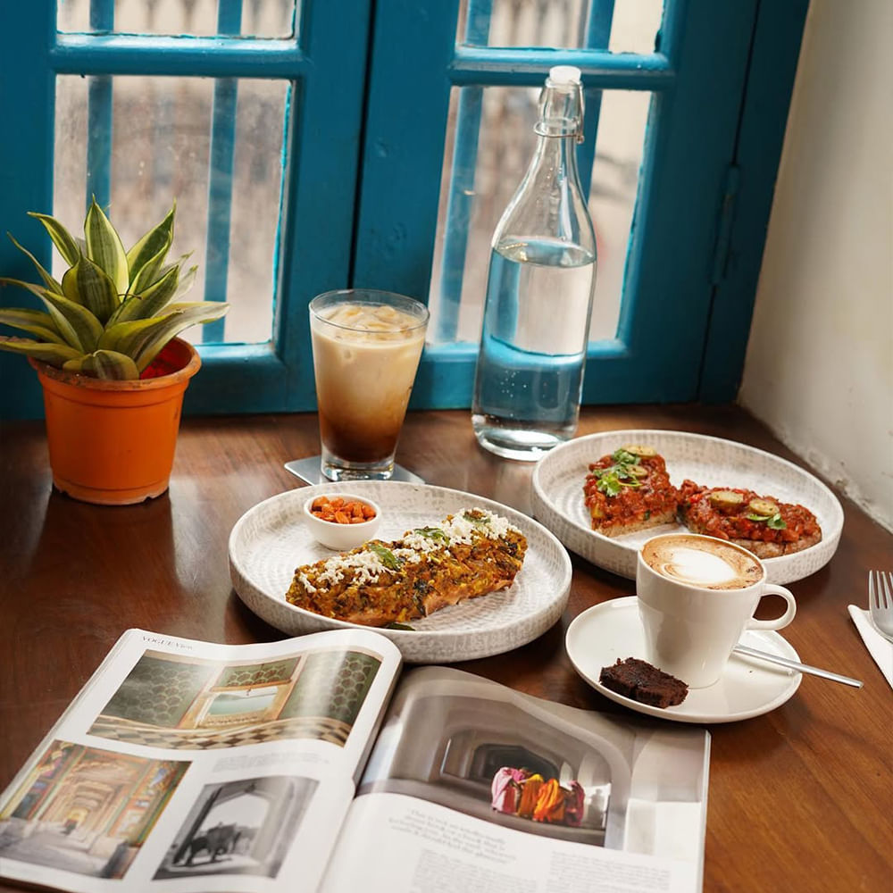 Long before they were popular, Artsy was ahead of the curve, establishing a perfect location for all those artistic book café fantasies. With teas from Goodwyn Tea and coffee roasts from Blue Tokai and Bili Hu, Artsy serves farm-to-cup coffee. The Breakfast Club's special menu all day has to be on your morning routine. The quietness of the cafe really pulls in people. Grab your book or a book from their shelf and just spend hours on end here. The best part of the cafe is a section with an overhanging plant section and a long table — perfect for meetings when you’re in the mood to run away from the office. Also, do not miss out the righthand side of the wall, which has an art piece called 'window', because you’re sure to get an aesthetically pleasing shot!