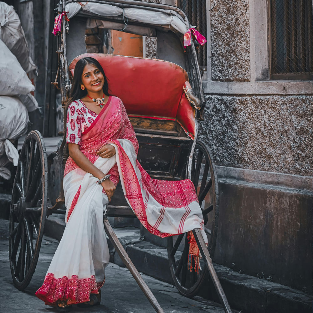 The sixth day of Durga Puja is called Shashtii. Also referred to as the day of Bodhon—this event commemorates the process of giving Goddess Durga's clay idol life. Astradan, the ritual of bestowing the ten weapons on the goddess, is also a part of the puja. Everyone dresses in their newest outfits on this particular day. Oh, and you have to wear it—you don't want FOMO! This is the exciting part! Subsequently, on Ashtami, the eighth day, we don not only white dhotis and laal par sada saris, but also the finest panjabis to present Pushpanjali.