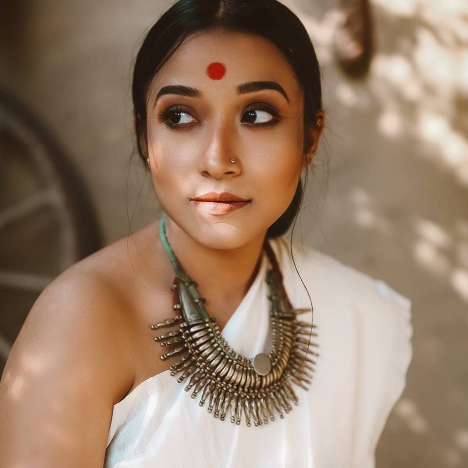 They work with German silver, silver alloy, pure silver and dokra. Their outsized cocktail rings can be the ultimate party piece and elevate any outfit and are a lesson in more is more. Every piece is handmade. Add a dose of punch to a simple one-tone saree or a shift dress with their Rupoli choker made with silver alloy beads (colour of the choker can be customised). Or vamp up an off-shoulder or anti-fit dress with their Trikon Haar. Best part is you won't bust your wallet to buy these beauties. The neckpieces start from INR 600 and the rings start from INR 500. The Gouri Haar (INR 1,600) with ghungroos and a Durga figure in dokra is truly stunning.