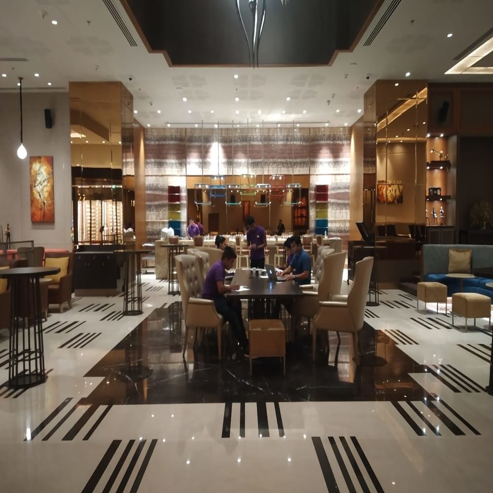 The Brass Room is a resto-bar in the newly opened ITC Royal Bengal. Inspired by the city's heritage, it is a stone studded bar, with regal decor. The minimal lighting of the place gives it the appearance of a vintage Jazz music club set-up. Since there is no entry fee, you can order from the à la carte menu. You can also weave into the mood with a drink or two from the bar.