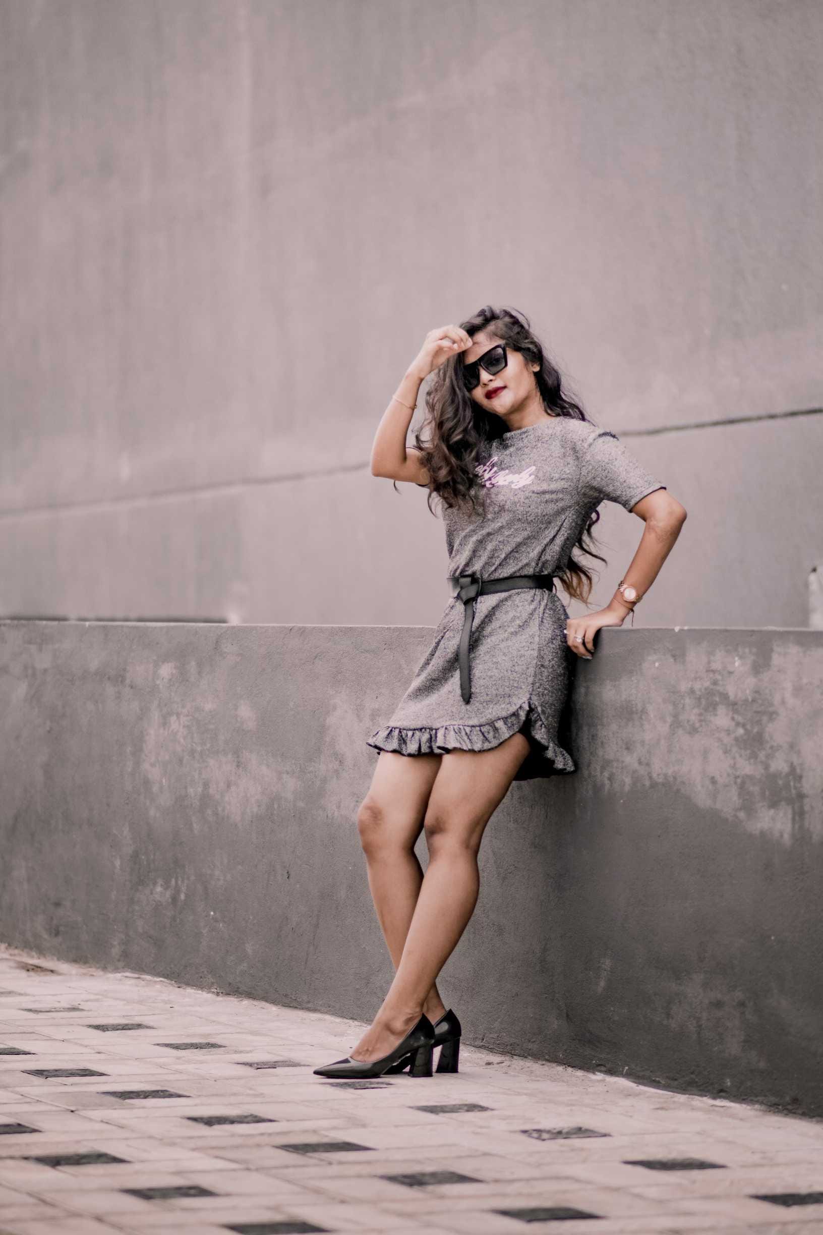 It has ruffles at the bottom part of the dress and it gives it a more edgy look.