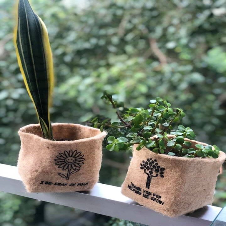 Kolkata-based online store Your Little Message has taken up the cudgels to spread Gross National Happiness by making gifting greens fun. This brand does cute planters and hampers containing money plants in coconut shells, among others. Aditi does customisations on pots, so if want a really cute motif or pattern just tell her and she'll happily oblige. Perfect for giving as gifts, we say. She's also got these really cute jute planters printed with messages like 'I be-leaf in you' or 'Thank you for helping me grow'.