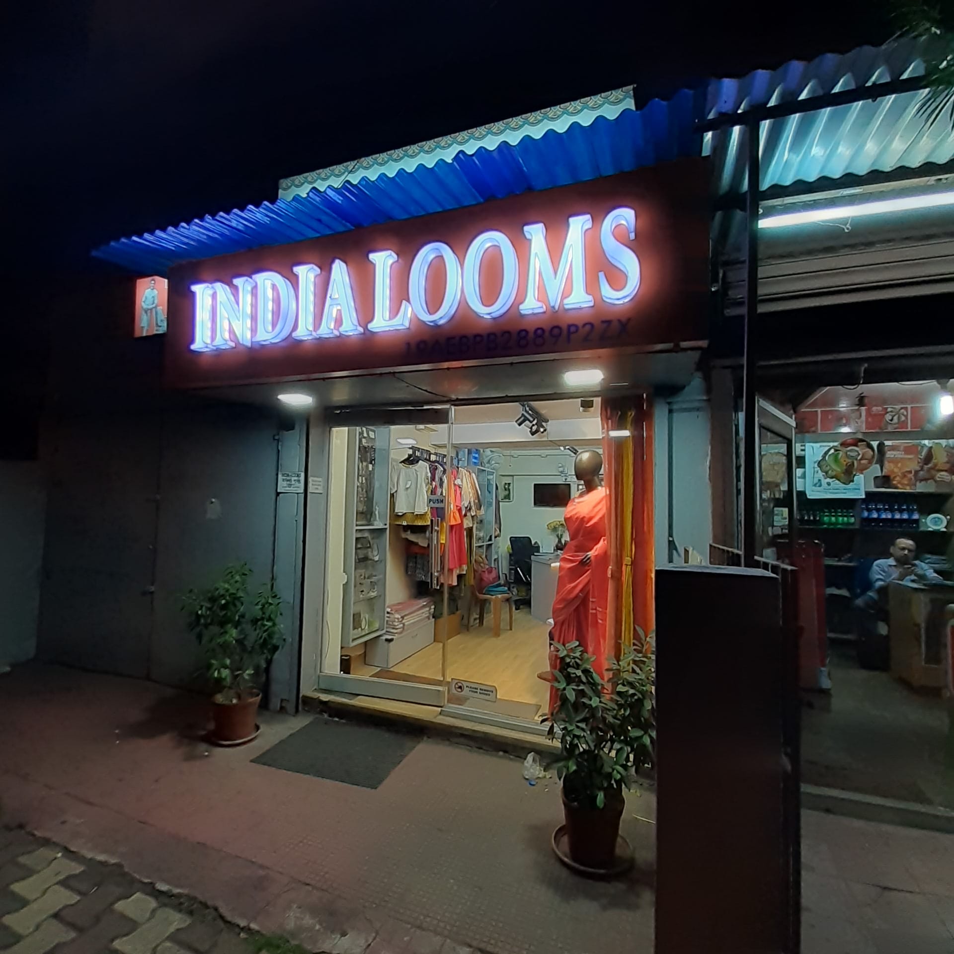 Indialooms in Salt Lake is your one-stop shop for sarees of all kinds. They also stock other kinds of apparel but the saree collection is a standout. The tops, kurtis, dresses and cloth materials are mostly for casual wear. The saree section is a little on the inside and beautifully done up with bright lights, decorative plates and frames adorning the walls.