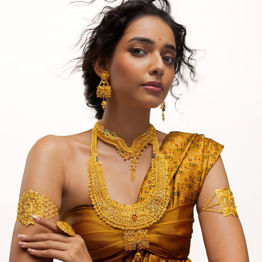 Every Bengali home is familiar with MPJ Jewellers in Gariahat; this is the type of establishment that families visit often throughout the years. From elaborate temple jewellery and traditional plain-gold pieces to sitahaars, kundan sets, chokers, bangles, and heirloom-inspired designs that feel timeless but rooted, their gold range is extensive. Full jewellery sets, gold chandbalis, earrings and even bespoke orders – they have it all.