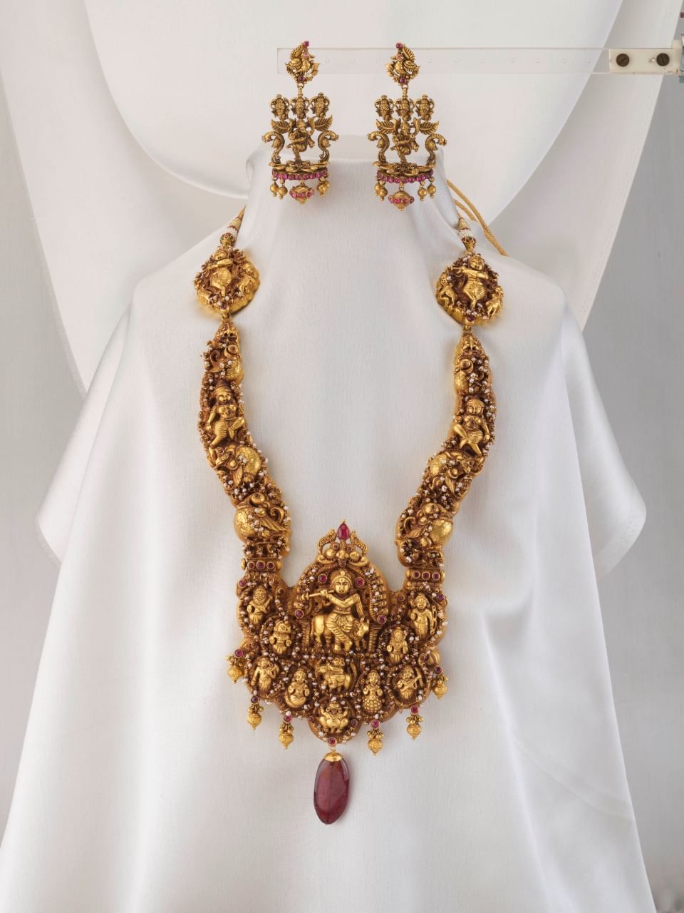 If you like to wear chunky accessories, we recommend taking a look at their Pujo-special collection, comprising elegant temple jewellery. From earrings to necklaces, every piece has been designed using ornate and elaborate motifs significant to several majestic temples. Pair them with a light chiffon or handloom saree and look 'heavenly' as ever.