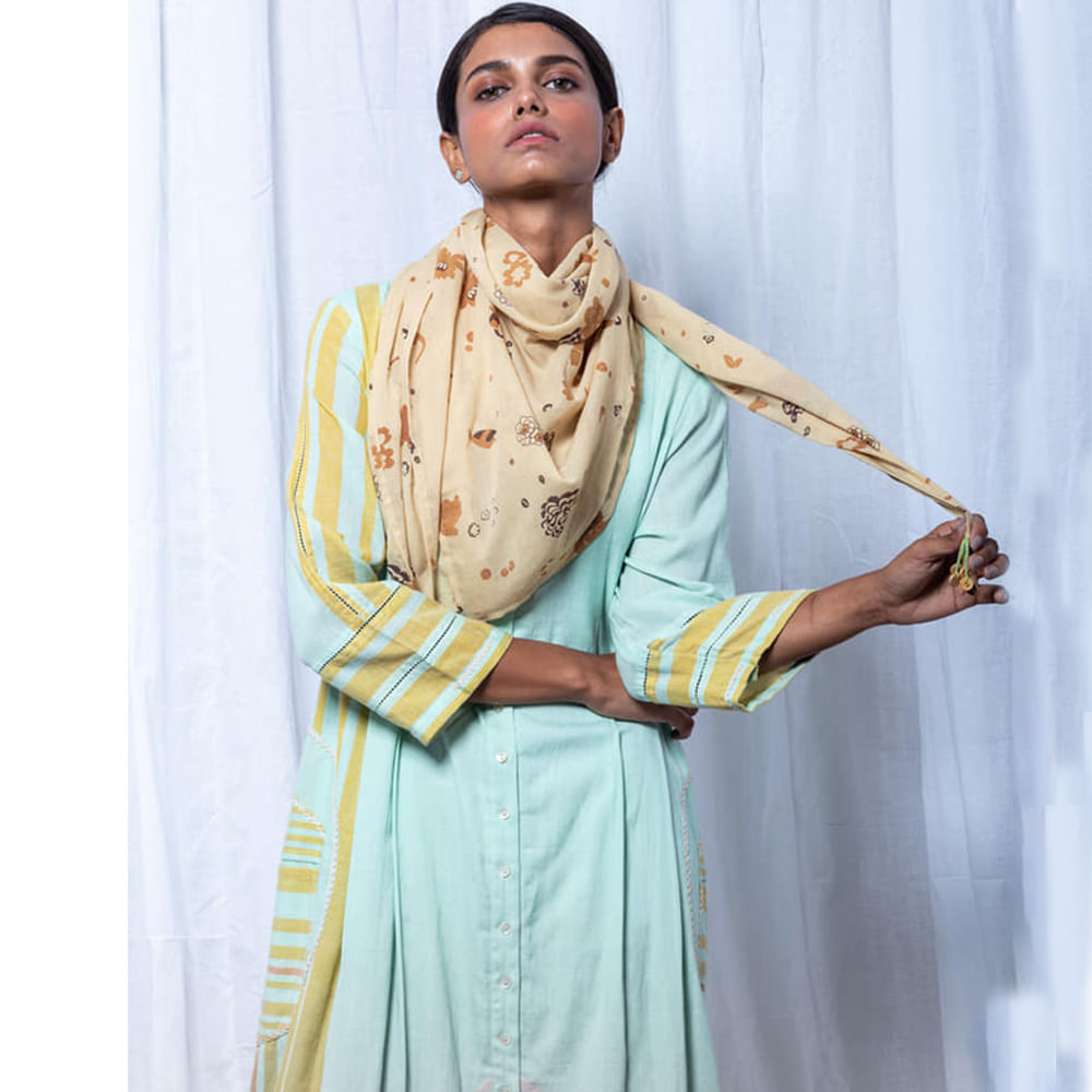 Their collection of kurtis is a treat too. From pastel shades to block-printed ones, these come in varying cuts and styles. Pair them with embroidered sneakers and you're sorted for the day. They also stock trendy handwoven chequered jumpsuits. Layer them with an ivory khadi cape to add some extra oomph.
