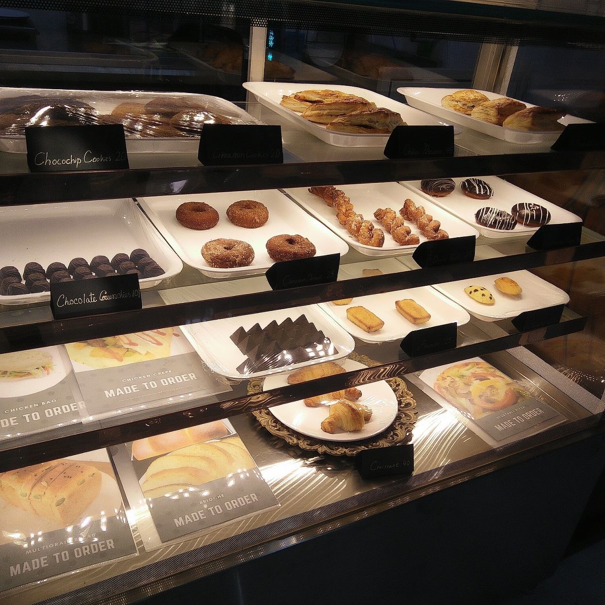 Their display has a delish assortment of pastries, chocolates, cakes, and doughnuts and also a range of savouries like patties, puffs and croquettes. They also have assorted boxes of macaroons, madelines and more,.What catches the eye are th.eir adorable vanilla and chocolate cupcakes, and cheesecake slices. The muffins are priced at INR 40 per piece, and doughnuts at INR 30. Burgers sandwiches and pizzas starts at INR 100. For beverages, they have iced teas, coffees, teas etc.