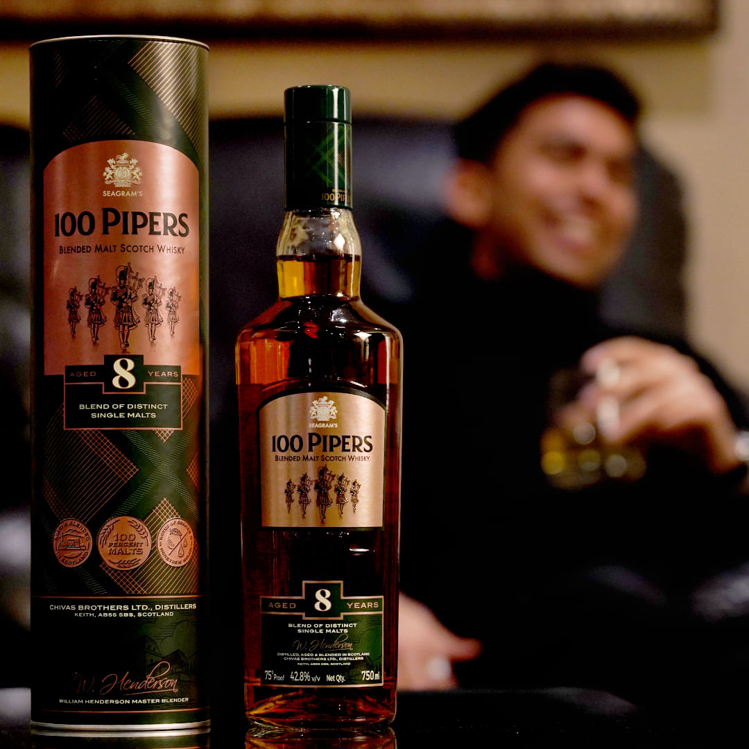 100 Pipers 8-year-old Blended Malt Scotch is a unique blend of distinct single malts curated from celebrated distilleries across Scotland!