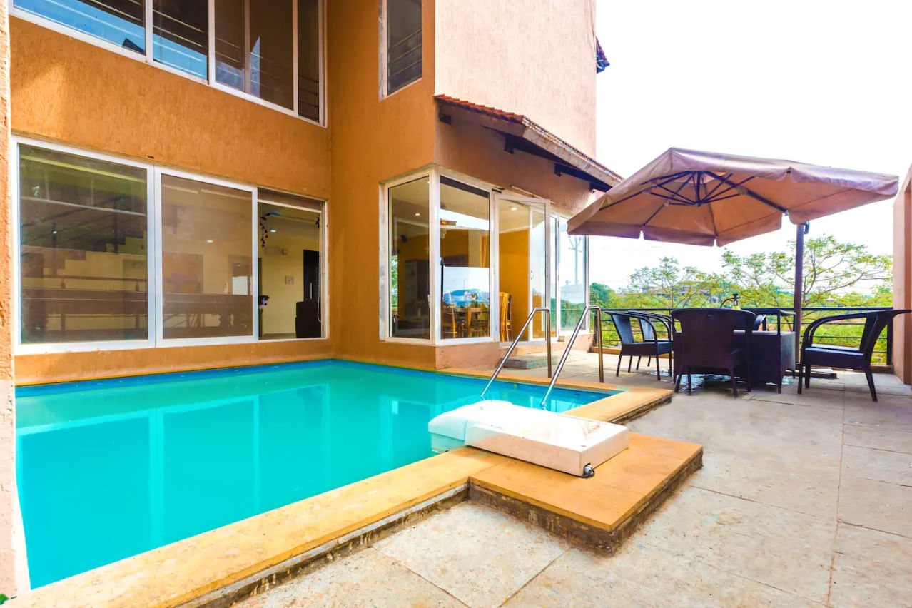 Serene and secluded, Ophelia villa is chock-full of modern amenities and has something for everybody. The 3BHK villa has a private pool, a private lawn and even a glass terrace area to sit out on and enjoy all that’s around you. The living room opens up to the pool area, that offers a great view.
