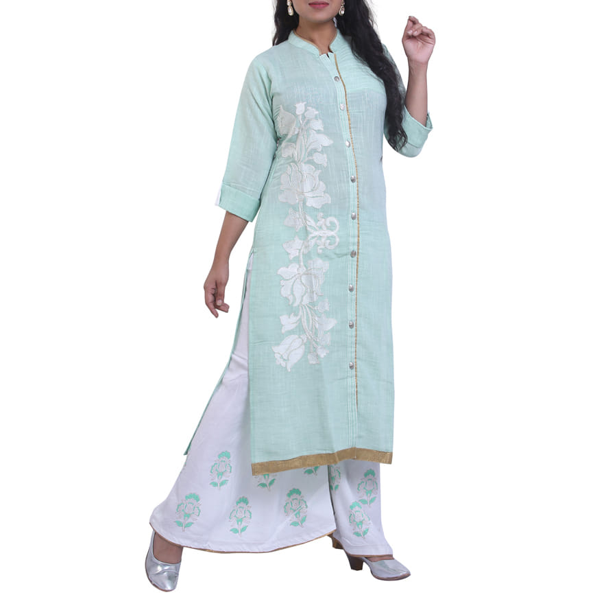 If you're looking for unique and exquisite designs at pocket-friendly prices, this online brand is for you. Apart from kurtis, they've even got paired sets of kurtis with palazzos, sharara, dupattas, dhoti and jackets as well. So, if you're bored of pairing your kurti with usual leggings or denims you can opt for an entire set as well.