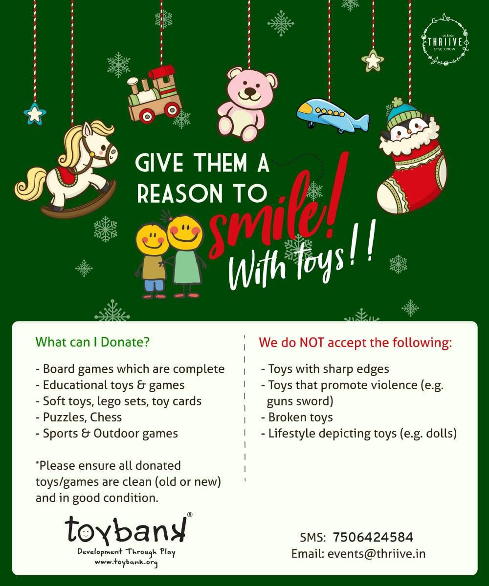 The season of giving is here, and Thriive Art & Soul is spreading the cheer in association with Toybank. Donate your old or even new toys and bring joy and development to at-risk children.