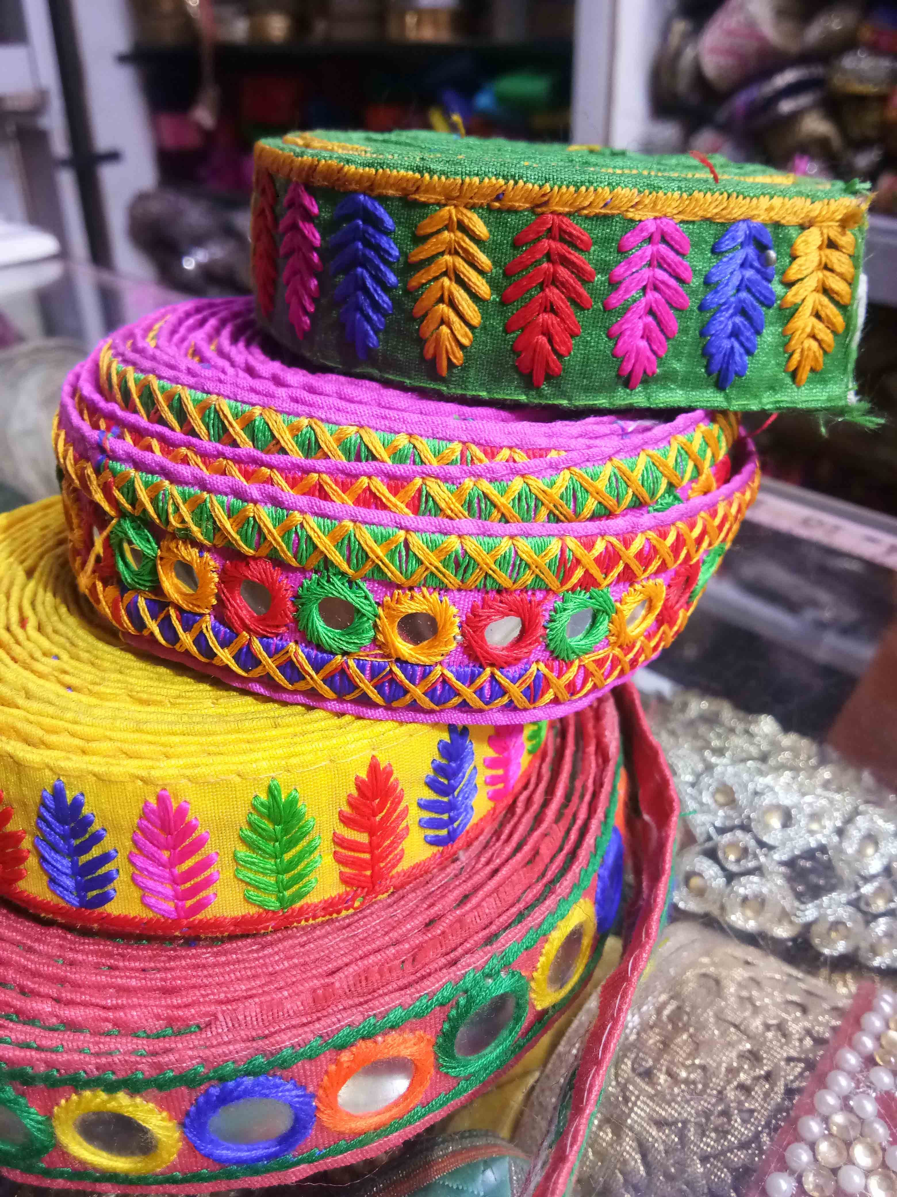 Art junkies and designers, we hope you're reading this because Crystal Collection inside Nadco has the prettiest of laces at dirt cheap price ranges. Go for their zardosi patchwork laces. We fell for a mirror work lace that had a Gujrati and Rajasthani touch to it. This tiny shop radiates positive vibes, because there's so much color on display. You can also get tassels from them, which can be DIYed into an earring, or attached to the back of blouses (you can choose your pick).