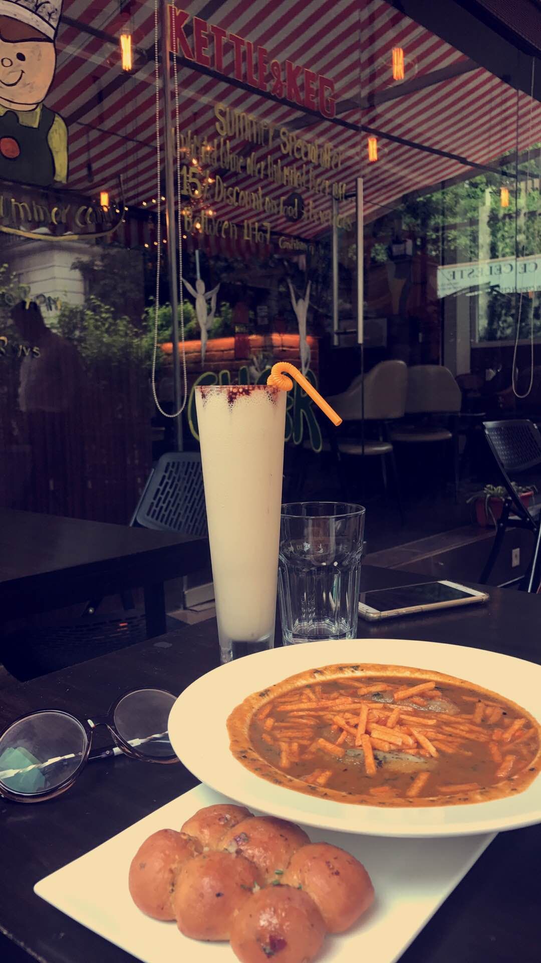 My friend recently took me to this cafe for breakfast. I am a big fan of Missal Pav, and I found this dish on their menu and thus went ahead and ordered it. When it was served to me, It was a total surprise - as potato sticks were served instead of Missal, the pav was the soup buns brushed with garlic and butter, and in the Missal gravy, there were sabu dana and potato mash cutlets.