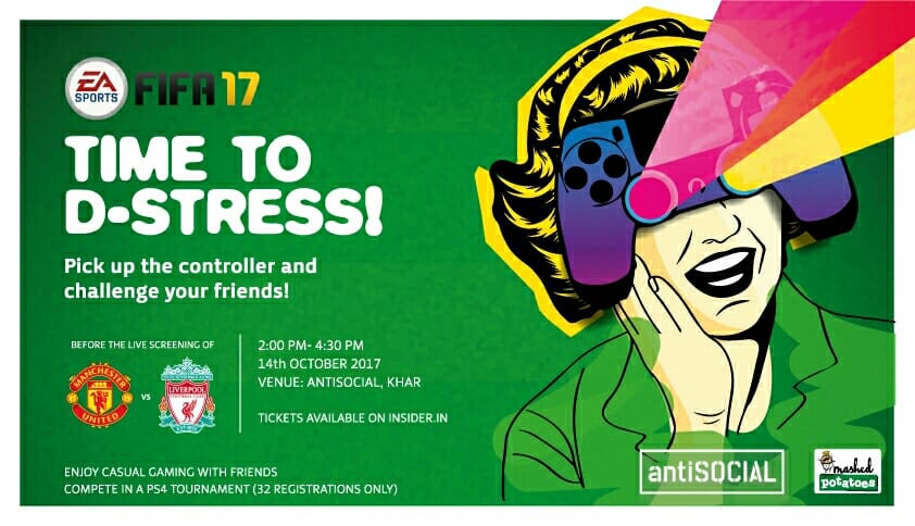antiSOCIAL (Khar Social) will be will be hosting a 32 player FIFA 17 tournament this Saturday (tomorrow), 2 pm onward followed by the #LiveScreening of Manchester United vs Liverpool FC at 4 pm.
