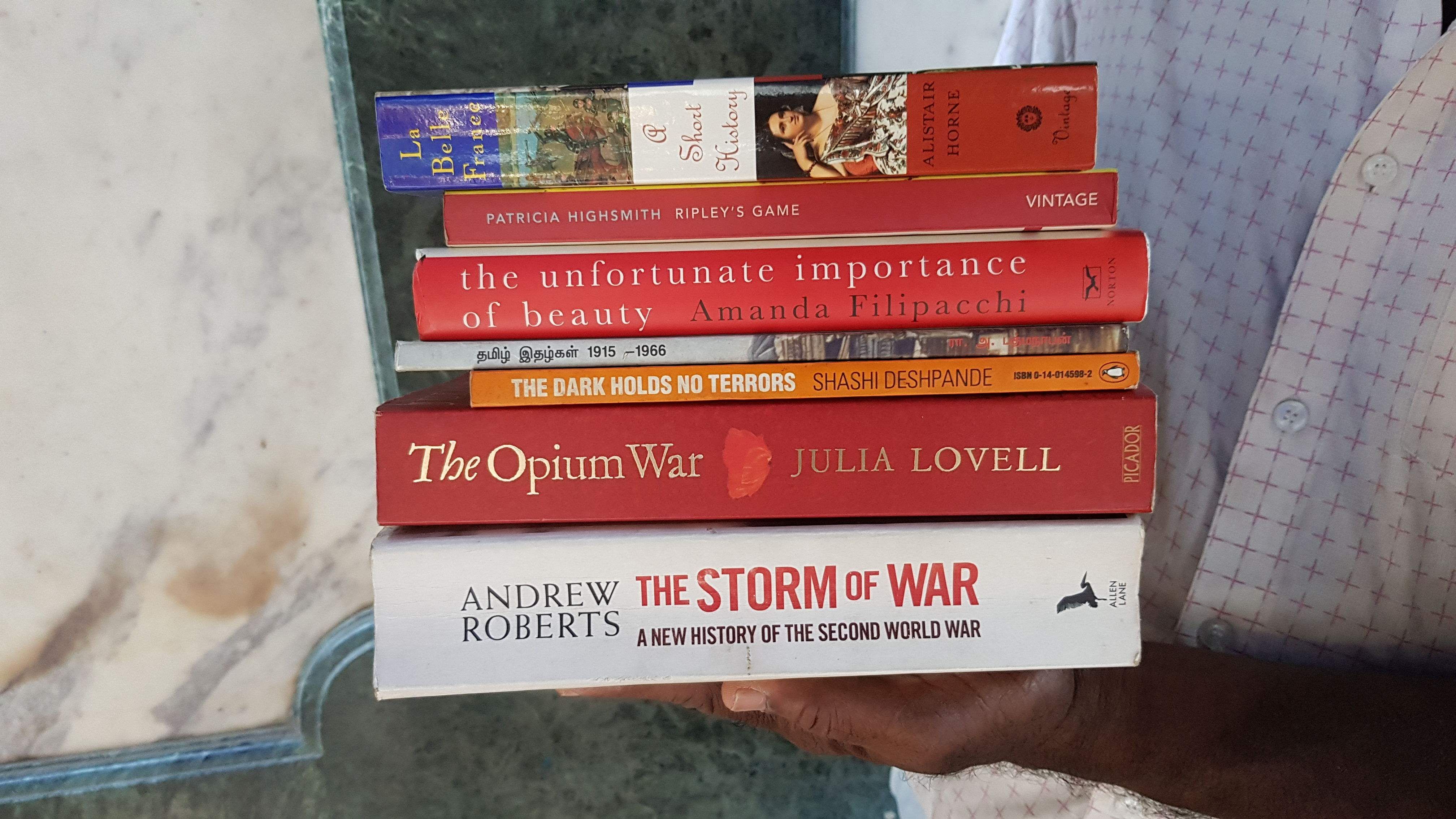 Expect to find more than reasonable prices on books. The stack of books that you see cost me 700 rupees. Hitler primarily deals with second-hand books, often times titles that are long forgotten or hard to get.