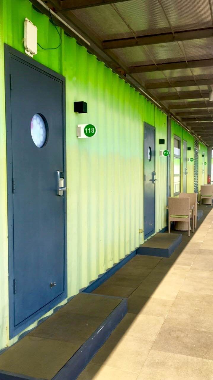 The exterior of the hotel is made with discarded 40-foot shipping containers that have been refurbished and each container houses 3 rooms.