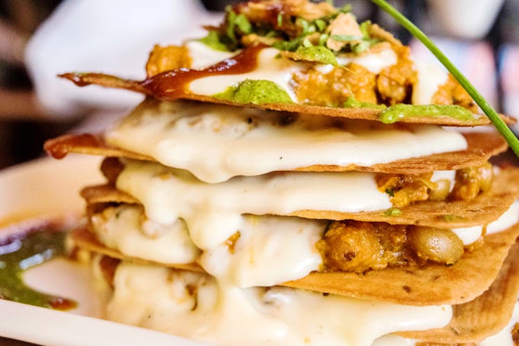 It’s just like it sounds. Your quintessential nacho chips have now been replaced with the essential Gujarati almost-papad by the folks at the Spare Kitchen. The dish is a three-layer khakhra tower interspersed with good helpings of kidney beans and salsa sauce, and is served with cheese sauce on the side. The khakras are made of wholewheat flour and are made fresh each day here. The serving size is at best meant for two people, so keep your hunger pangs in mind.