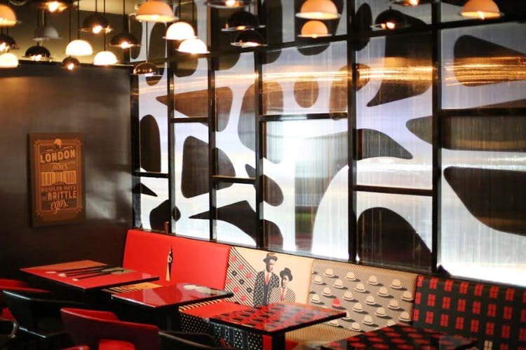 Located right opposite Farzi Cafe, this place is endowed with bling and the quintessential London bus red. They have European, Continental and British flavours on their menu. Think Tandoori Broccoli with Blue Cheese, The Sri Lankan Pita Pockets and Banana Toffee Rum Parfait as dessert.