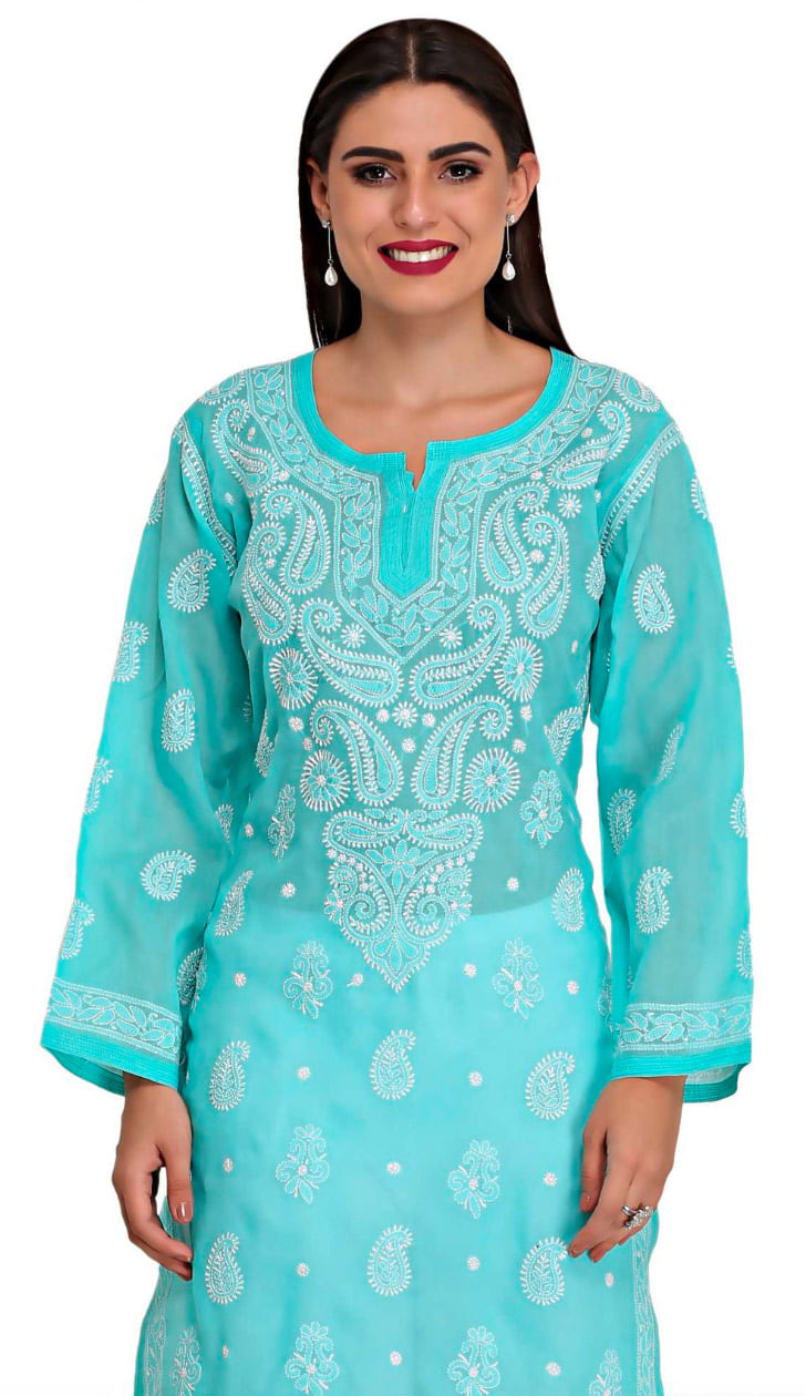 Lucknow Chikan International in Opera House has an extensive collection of Lucknowi cotton kurtas, kurtis, tops and more. The collection is extensive and they also have a great collection for kids here. While most of the patterns are on the traditional side, they do have some contemporary style too that are great for a casual party or event. We love the traditional kurtas for everyday workwear.