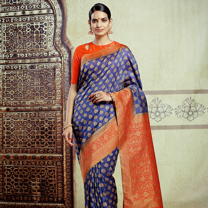 From casual and office wear to traditional bridal wear their collection specialises in hand embroidered thread work called Gotha Patti. The price range of their wedding wear collection starts from INR 15,000. We fell in love with their bright red Banarasi saree with fine golden thread work on it.