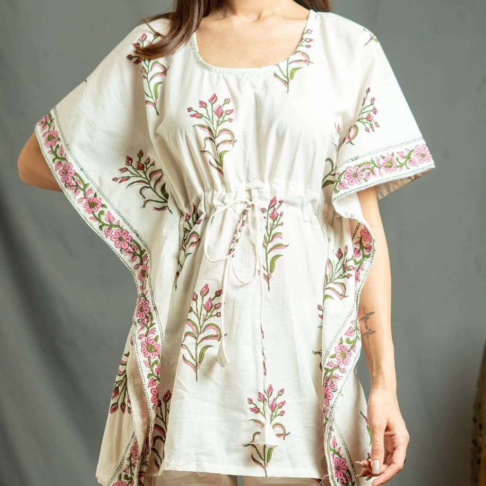 Mohar, a Jaipur brand that delivers all over the country, uses premium traditional fabrics with contemporary design to bring you night suits, kurtas, dupattas that are both stylish and comfy. The bouquet and floret block print kaftaan night suits are our favorites. For INR 1,899, they're made in feather-light cotton, and are available till size XXL. The other nightsuits come in teal, powder blue, pink, grey chevron, yellow and blue. You can also go for their pure mulmul kurtas in pastel shades that come with soft cotton dupattas that have cute little latkans on them. Starting from INR 2,599, the kurtas and the pants that come along with it, have intricate gota work on them.