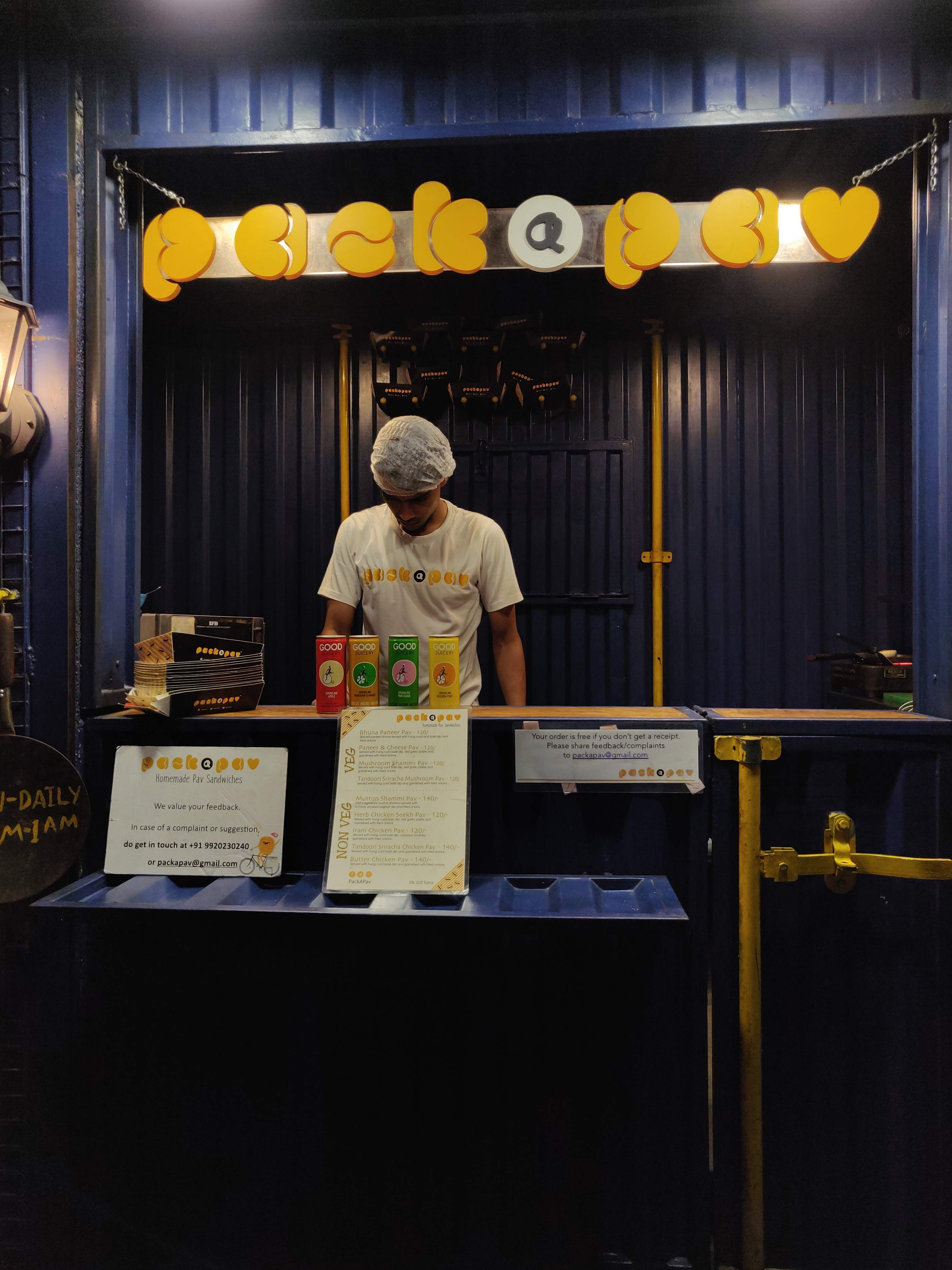 Pack-A-Pav is a brainchild of Rohan Mangalorkar who envisioned comfort foods in the form of easy to eat snacks and integrated home cooked recipes by his mother into his venture. Being a delivery outlet at Juhu, online orders keep buzzing throughout the day and also patrons crowding the outlets. There is actually no place to sit but still a preferred eating point for many. Being next to Bar Stock Exchange is just trouble free tracking.