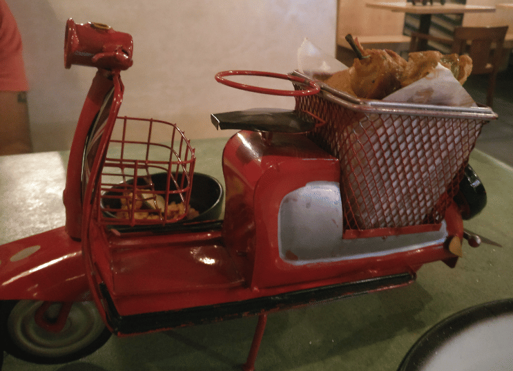 The assorted pakoras are served in a miniature scooter with green chutney and butter chicken is a must-try at this place, very fresh and delicious.