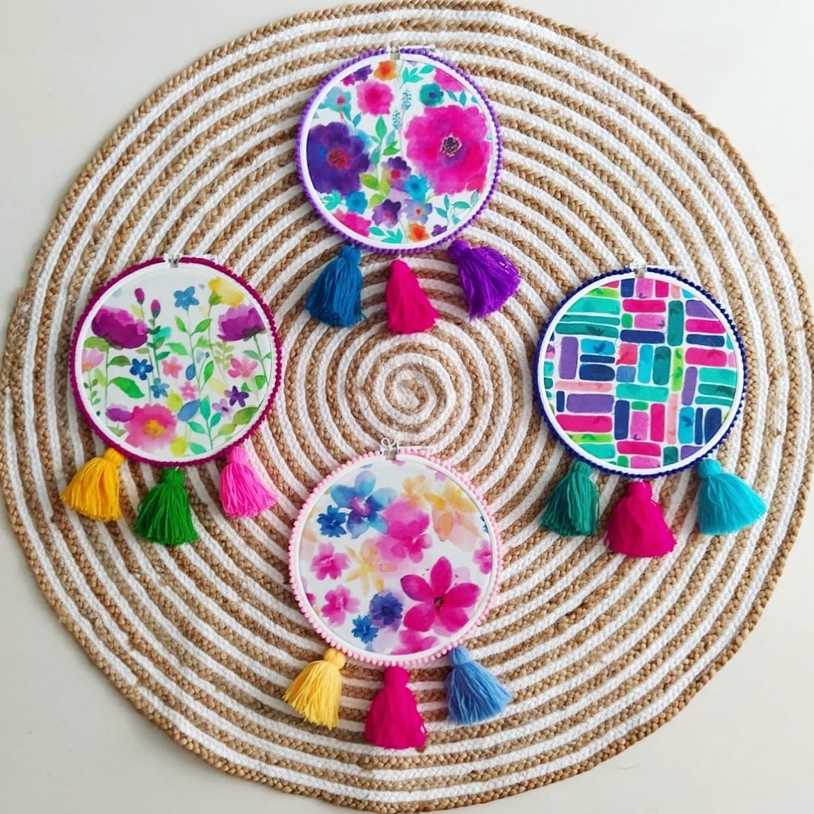 Her collection ranges from pretty curtains and funky cushion covers to floral wall hoops and plates. Each of the products you'll come across on her feed is made from natural cotton fabric and is handpainted by her with safe dyes. With a keen interest in florals, her collection is surely a treasure box for floral prints lovers like me. I, being the decor junkie that I am, am in love with their cushion covers. Minimal yet bright enough to add a pop of drama in your living room or your bedroom. (Tip: use these against a plain surface to make them stand out!). Psst, we hear their cushion covers are actually their best-selling products. Oh, and not to miss out on their wall hoops. Expect lots of pastels, tassels and floral prints. Ideal for your balcony, room or office space even.