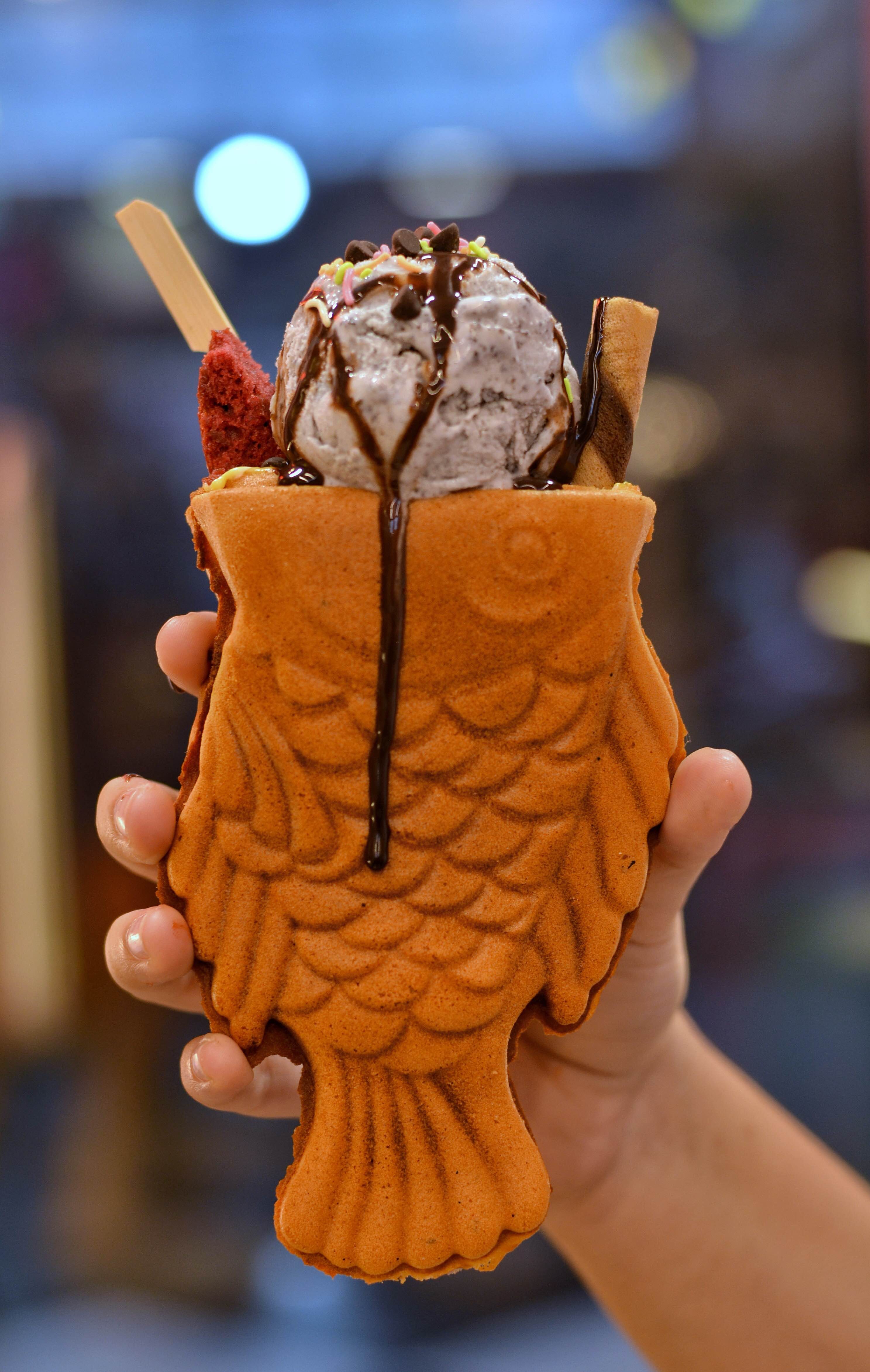 You could actually eat fish here! Hahaha, not the real sea fish but a Japanese dessert called the Taiyaki! It’s basically waffle added with red bean paste or custard and added with some kickass Icecream flavours!