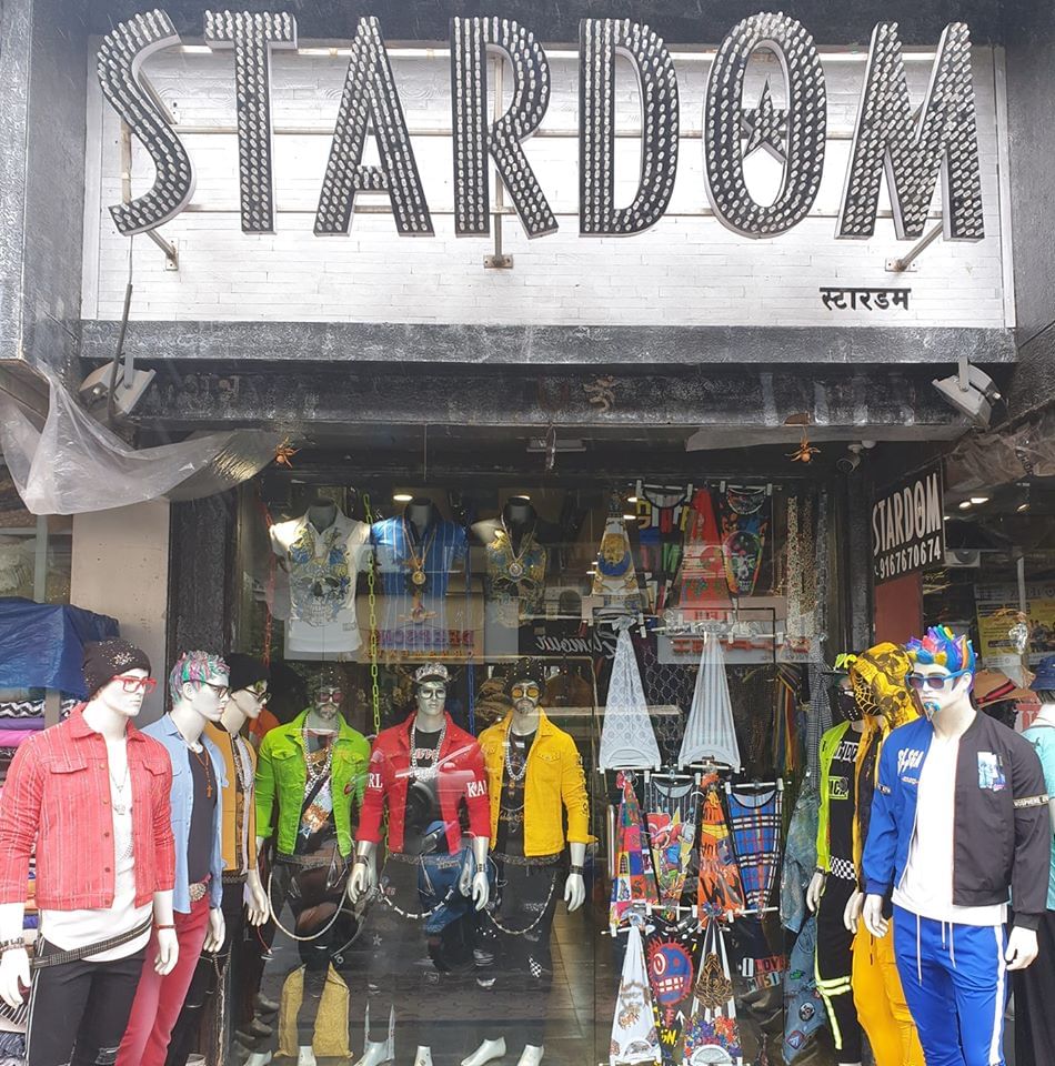 The path to stardom may be a rocky one, but if you're dressed perfectly... You're pretty much sorted. Stardom's got your heavy studded jackets, bedazzled caps, spiky shoes in neon hues, and even glow-in-the-dark t-shirts. Don't miss the rack of belts with the most interesting buckles.