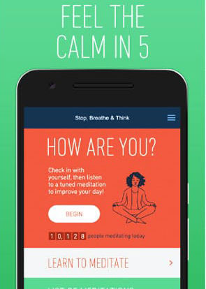 Stop, Breathe, Think helps you meditate according to your mental and emotional state. It begins with asking you to tune in with yourself, check how you are feeling mentally, physically and emotionally (and click on boxes to check the emotions you have). The app then guides you to do different meditation and breathing exercises, as well as shows yoga postures and exercises to guide you with the help of videos. It’s bright, happy interface will uplift your mood whenever you do use it.