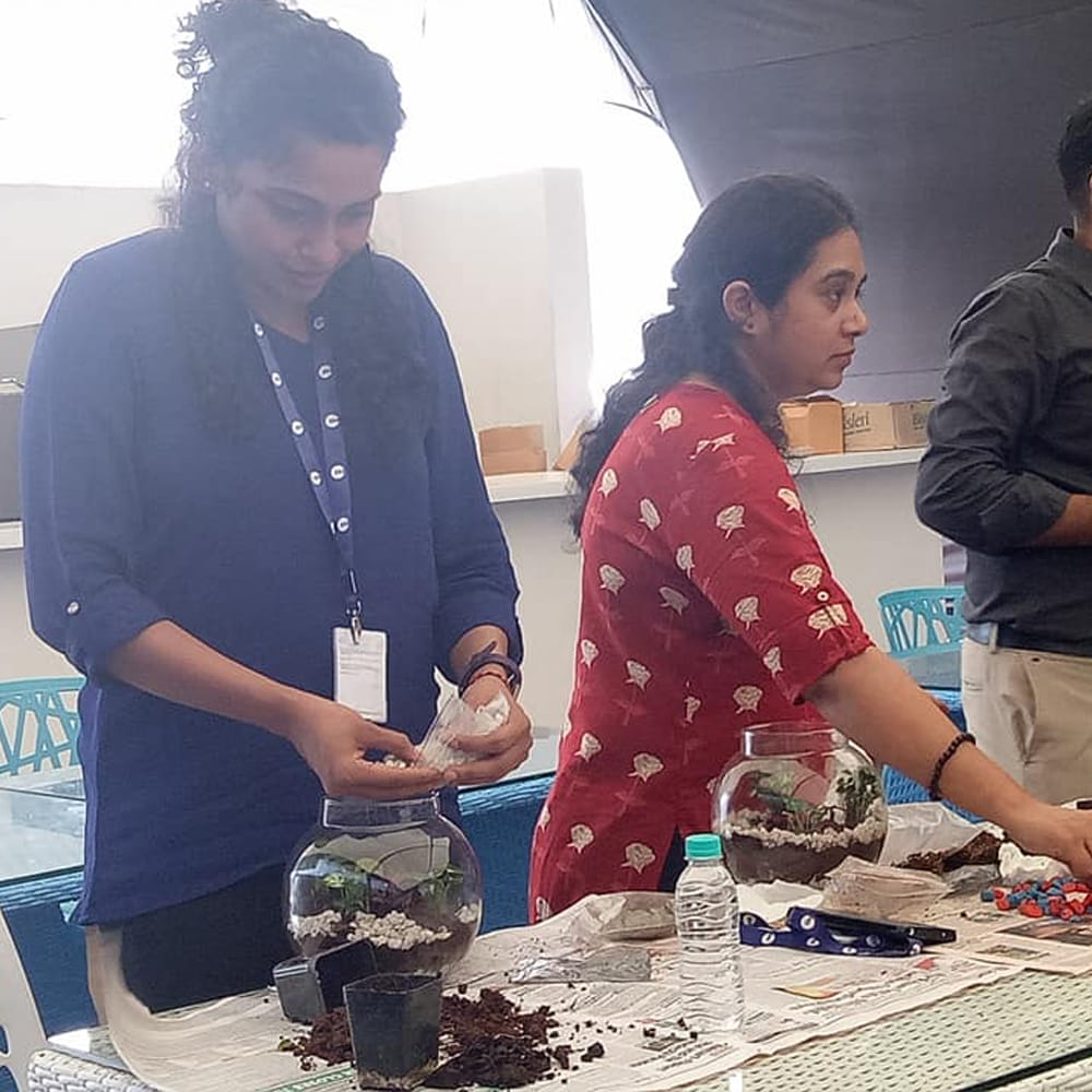 The workshop will cover the following areas - teach you the basics of terrarium making, plant selection and introduction to plants and their light requirement, different styles of terrariums, materials, and tools needed, bottle garden, dry open terrarium, a demonstration on a dish garden, demonstration on broken pot fairy garden. The price per person is INR 2,500 and includes all the materials needed to make your terrarium gardens.
