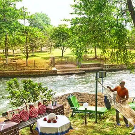 Located in the scenic countryside of Karjat, in a tiny village called Vaijanath en route to the Tata Power Plant, is The Brook is a private property built on an acre of land overlooking the Western Ghats on its one end, while touching a perennial, flowing river on the other. This is an entire villa, so you will have the property to yourself.