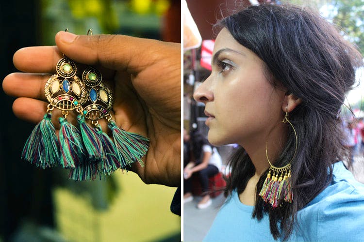 Hong Kong lane is a small street just off Fergusson College Road, famous for it’s flea-market style shops and bargain prices. If you’re looking for quirky, budget jewellery – it’s your best bet. Our team paid a visit here earlier {more on that here}, and picked up long/chunky earrings, starting from INR 100 onwards. If you look carefully and shop patiently, you’re bound to strike gold {unfortunately, we mean that in the figurative sense}.